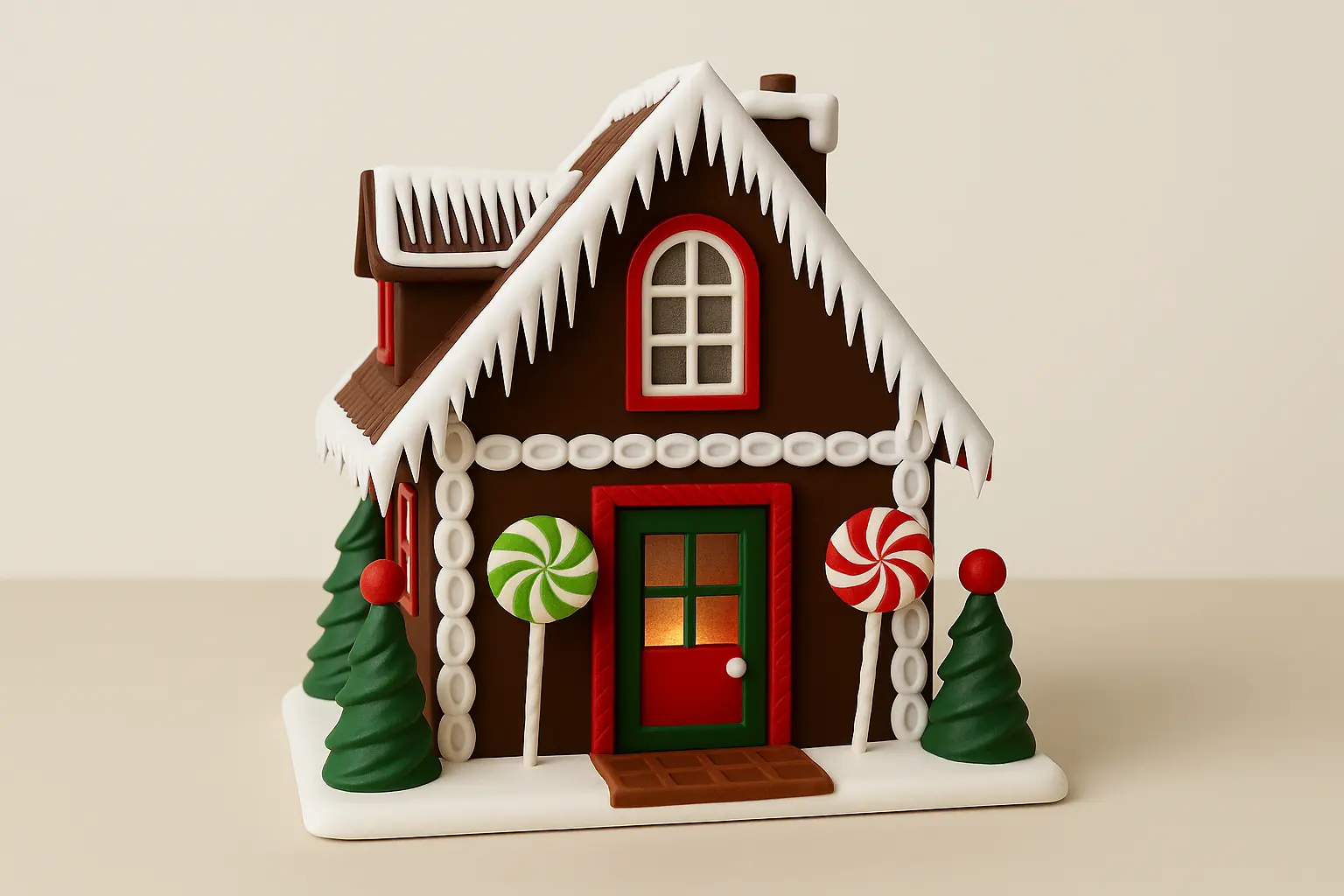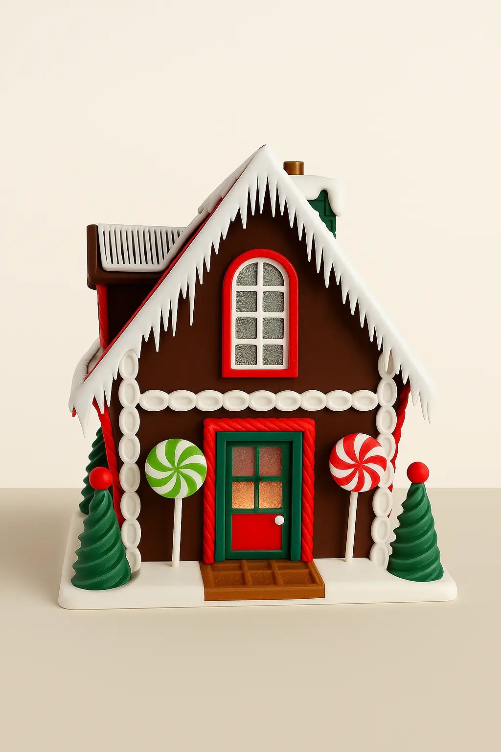 Gefertigt wird das Lebkuchenhaus im 3D-Druckverfahren. Dadurch ist es leicht und dennoch stabil. Die glatte Oberfläche macht es modern und pflegeleicht – Staub kann einfach mit einem trockenen Tuch entfernt werden. So bleibt es viele Jahre schön und lässt sich jedes Weihnachten wieder aufs Neue verwenden.